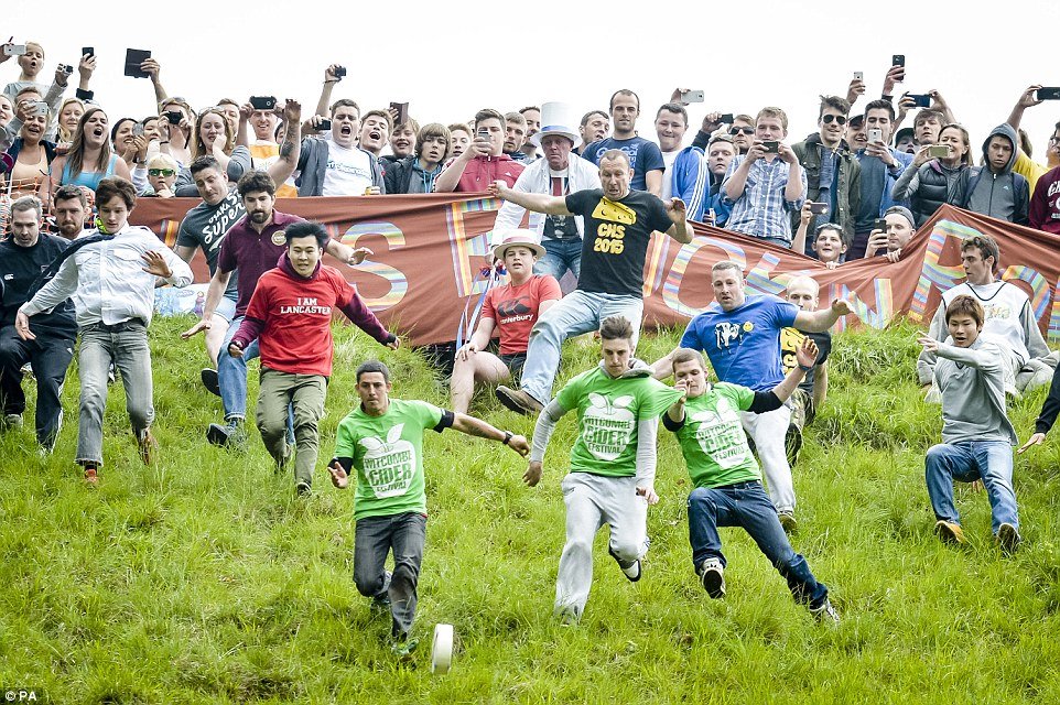 Удивительная гонка проходит ежегодно на Котсуолдских холмах в Великобритании. Участники собираются на вершине холма. Со склона вниз кидают головку сыра, и все бросаются вдогонку. Выигрывает тот, кто поймал ее и добежал до финиша. Победитель получает в качестве приза ту самую, побитую и перемазанную грязью, головку сыра.