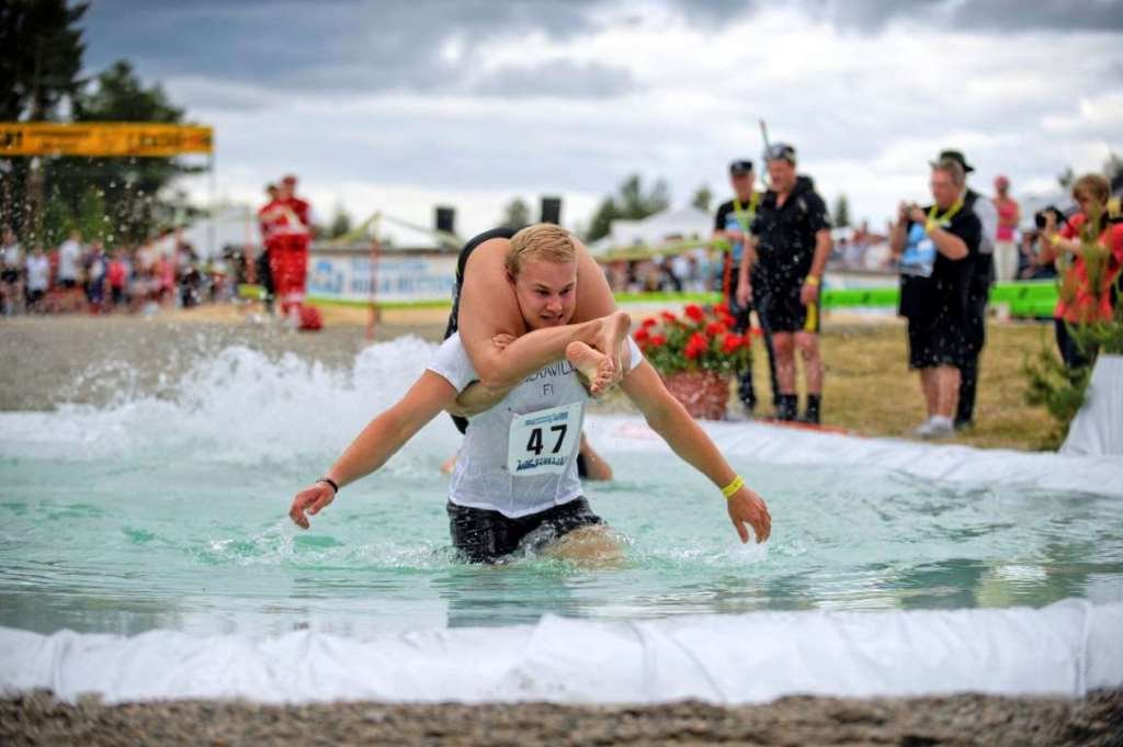 Каждый год в Финляндии проходит забавное состязание: мужчины вместе с женами преодолевают 250 метров трассы с препятствиями. Переносить спутниц можно по-разному: через плечо, на плече, крест-накрест. Но чаще всего женщины обхватывают плечи мужа ногами и свисают вниз головой. Победителю гонки достается приз — бочонок пива весом с его жену.